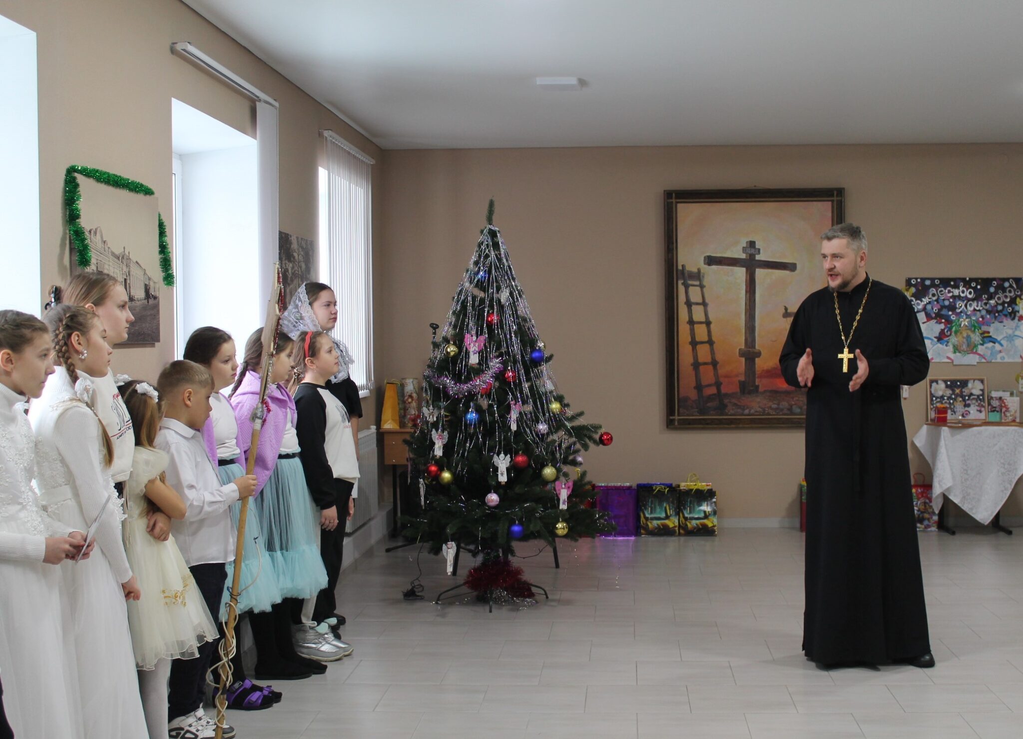 В этот светлый праздник, наполненный теплом и уютом, радостью и любовью, воспитанники Воскресной школы вместе со своим педагогом С. М. Мартыновой и С. Н. Старостиной подготовили для гостей мини-концерт. Возле нарядной елки ребята исполнили Рождественскую песенку, отгадывали загадки, рассказывали любимые стихи о Рождестве Христовом.
