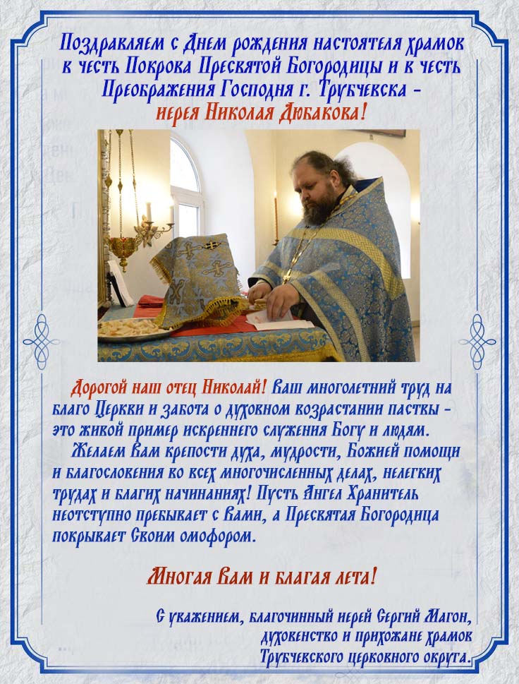Поздравляем с Днем рождения иерея Николая Дюбакова! Фев14 Поделиться:TwitterВКонтактеОдноклассникиGoogle